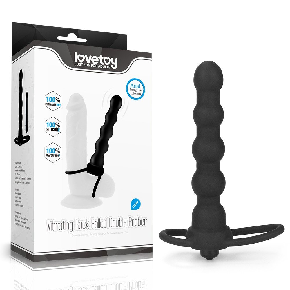 Experience heightened arousal and a stronger erection with this Vibrating silicone strap on attached beaded shaft and balls rings. Enjoy gentle pressure to the base of the penis and scintillating double penetration from the vibrating probe